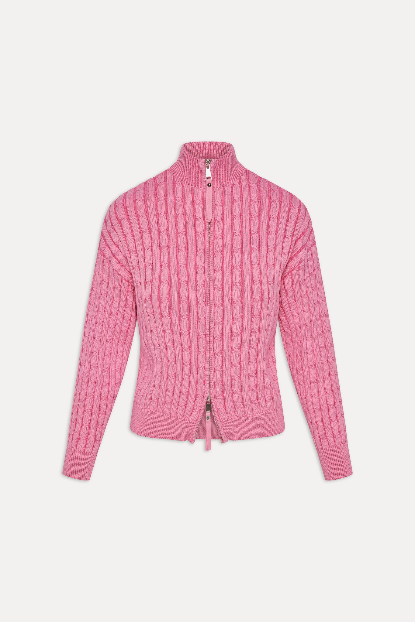 Bea Cable Knit Zip Up Sweater - Sweetheart
