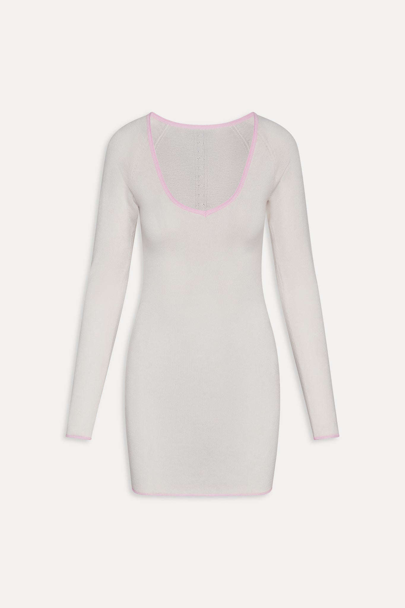 Rolled hem and sleeve openings with a soft pink accent
